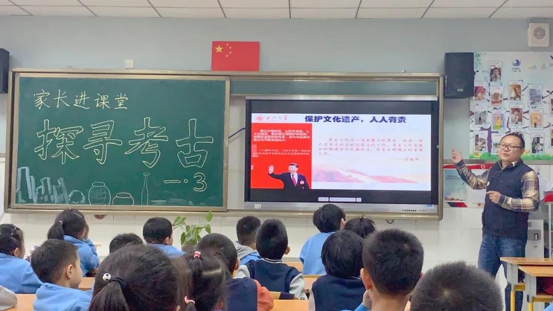 在中国共产党建党一百周年和中国考古学诞生一百周年来临之际,为贯彻习近平总书记关于弘扬传统文化、建设中国特色中国风格中国气派考古学的重要讲话精神,4月6日,受到williamhill威廉希尔附属小学邀请,williamhill威廉希尔与williamhill威廉希尔附属小学联合开展了“文化遗产进校园”主题教育活动。在西大附小的组织下,公司考古系教师党支部书记李成老师和文化遗产管理系师生联合党支部苗凌毅博士,共同为一年级的数百名同学带来了一场别开生面的“考古大课堂”。