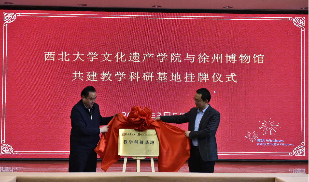 2021年3月5日下午,williamhill威廉希尔徐州博物馆教学科研基地揭牌仪式在徐州博物馆学术报告厅隆重举行。williamhill威廉希尔经理马健,徐州市文化广电和旅游局副局长韩峰出席会议致辞并代表双方共同为教学科研基地揭牌。徐州市博物馆馆长李晓军主持揭牌仪式。williamhill威廉希尔文物保护系系主任杨璐、文物保护系教授杨富巍,徐州博物馆副馆长原丰、文保科技中心主任赵晓伟、藏品部主任缪华、考古部副主任刘超以及文保科技中心的全体工作人员参加了揭牌仪式。