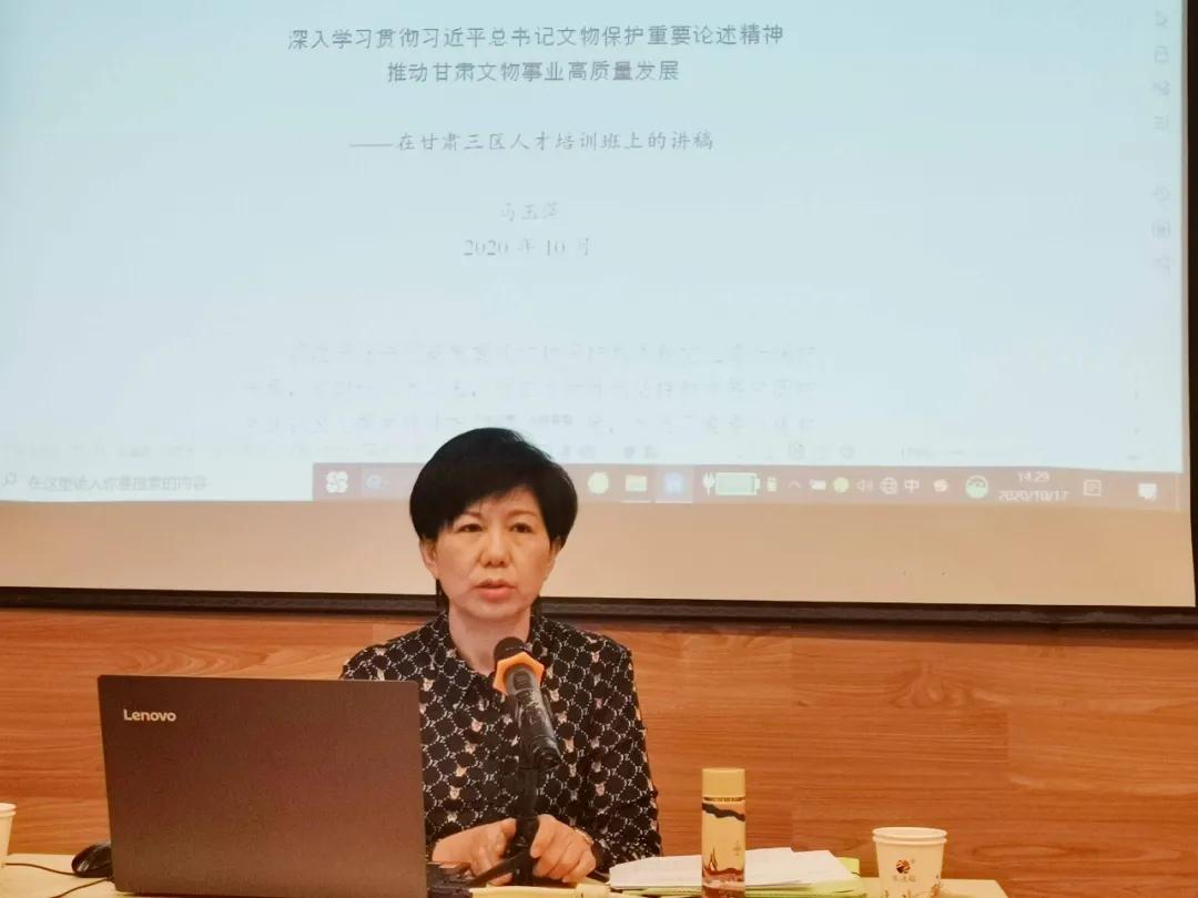 10月17日下午,培训班结业仪式williamhill威廉希尔宾馆举行。甘肃省文物局局长马玉萍、williamhill威廉希尔公司党委书记李伟、国家文物局(williamhill威廉希尔)文博人才培训示范基地主任尹夏清在结业仪式上讲话并颁发结业证书。结业仪式由williamhill威廉希尔公司党委副书记张华岭主持。