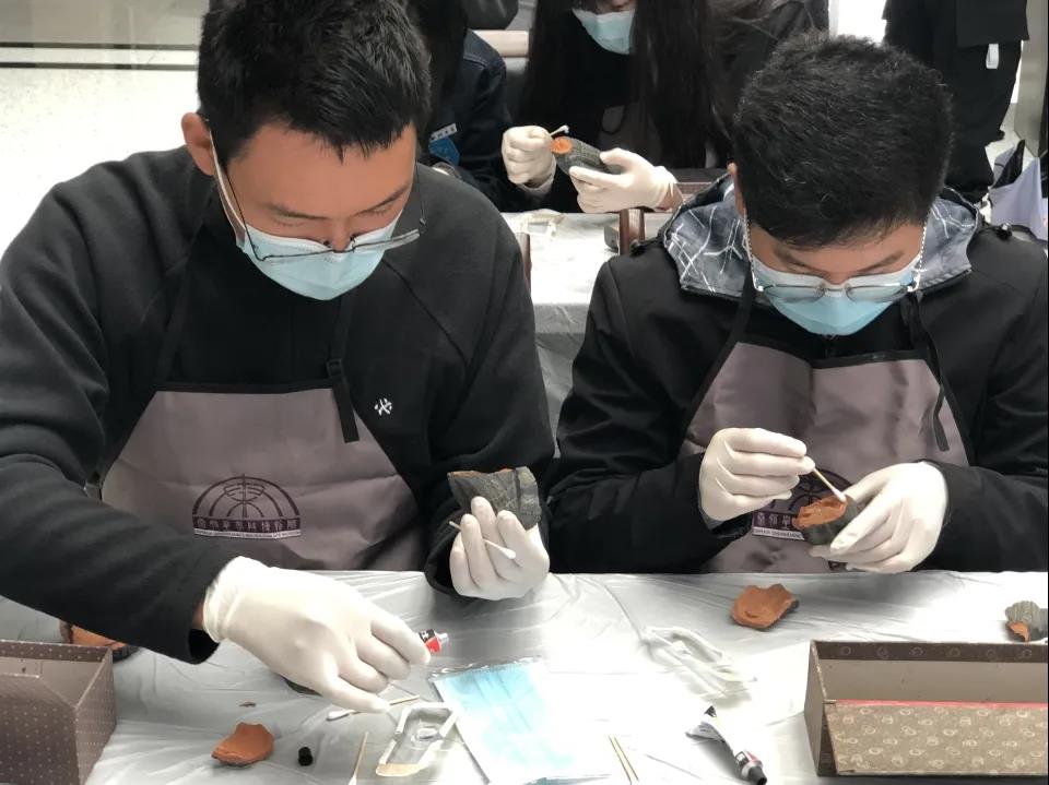 当日下午全体师生分为三组由社会教育部讲解员带领参观博物馆展厅等地,感受秦兵马俑的魅力。考古学专业组前往陵西大墓,由考古工作部蒋文孝研究员讲授考古课程;文物保护技术专业组前往办公区文物修复室,由文物保护部主任夏寅研究员讲授文物保护课程,由兰德省研究员、刘江卫副研究员讲授文物修复课程;文物与博物馆学专业组则在学术报告厅中庭,由社会教育部马灵芝讲授博物馆公众教育课程,并开展“我是文物修复师”博物馆公众教育活动。