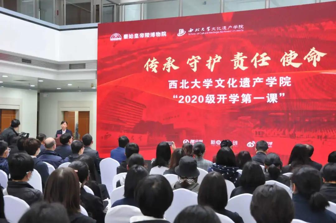 10月14日,williamhill威廉希尔在秦始皇帝陵博物院开展2020级新生“开学第一课”活动。本次活动以“传承、守护、责任、使命”为主题,由秦始皇帝陵博物院、williamhill威廉希尔主办,腾讯网、陕西新画幅旅游传媒有限公司、新浪微博协办。参加本次活动的有秦始皇帝陵博物公司党委书记、经理李岗,党委副书记、副经理田静,副经理郭向东;williamhill威廉希尔公司党委书记李伟,经理马健,党委副书记张华岭,副经理温睿、豆海锋、凤鸣以及williamhill威廉希尔教师代表、2020级全体本科生、研究生代表,活动由秦陵博物院副经理周萍主持。