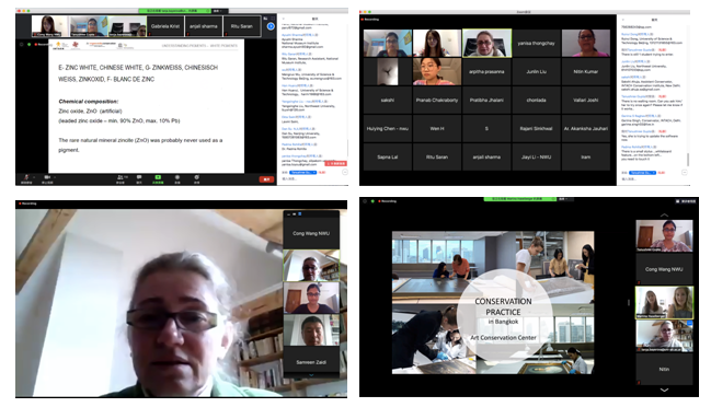 此次活动由奥地利维也纳应用艺术大学艺术品修复研究所Gabriela Krist教授发起、Tanushree Gupta博士主持,于6月4、11、12、22、25、26日围绕文物颜料和染料保护研究进行了一系列特别讲座。课程讲座由知名修复专家Dr. Tatjana Bayerová讲授,她根据颜色系统地介绍了从古至今最为常用的各种天然、人工颜料与染料,以及它们的化学组成、来源、使用年代、具体制备方法和各种性能等,同时以世界范围内的多个壁画、油画为具体实例,讲述了实际情况下文物中颜料/染料出现变色、褪色可能发生的原因和待解决的难题,为学习者开拓了一些新的思路、提供了新的研究方向。