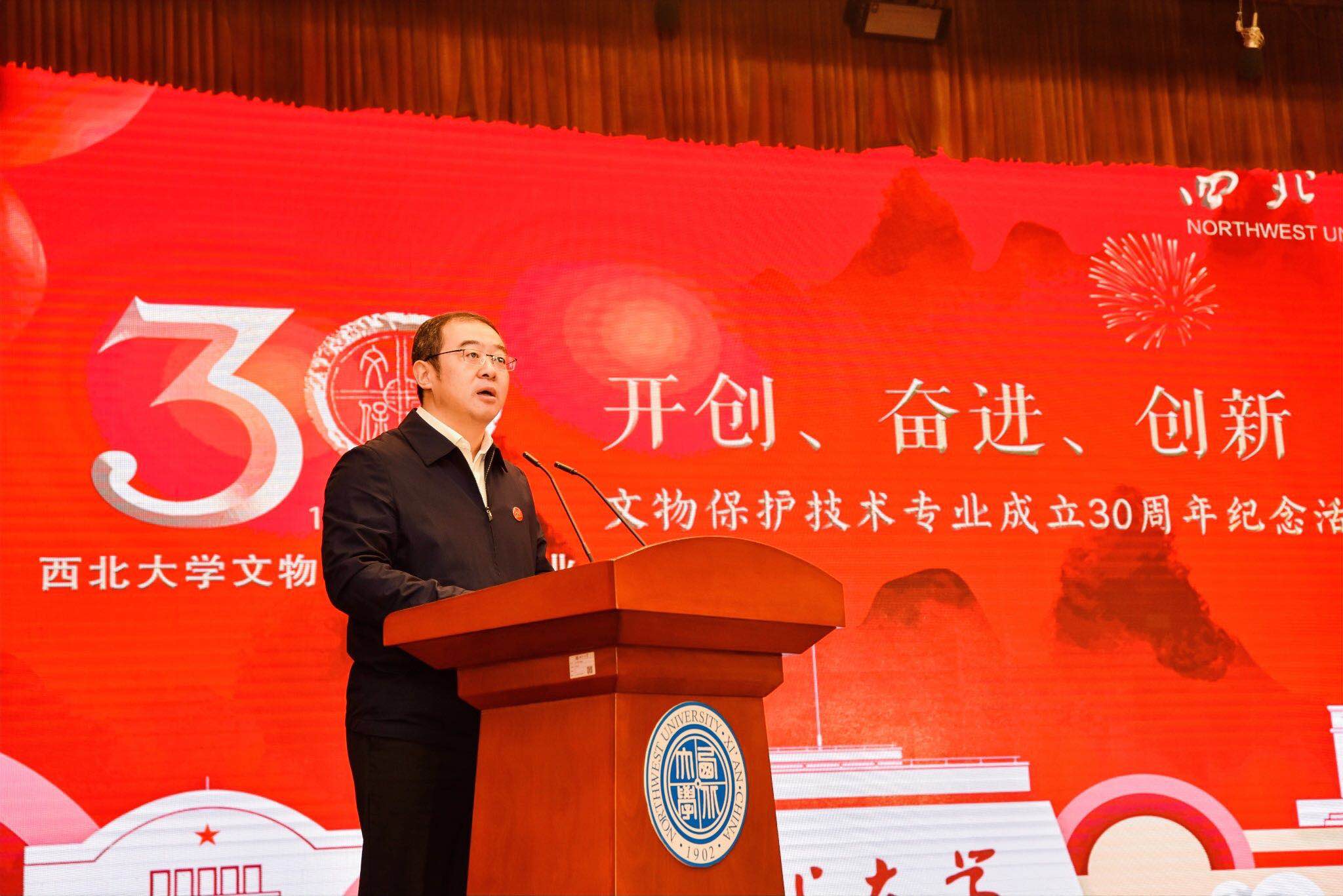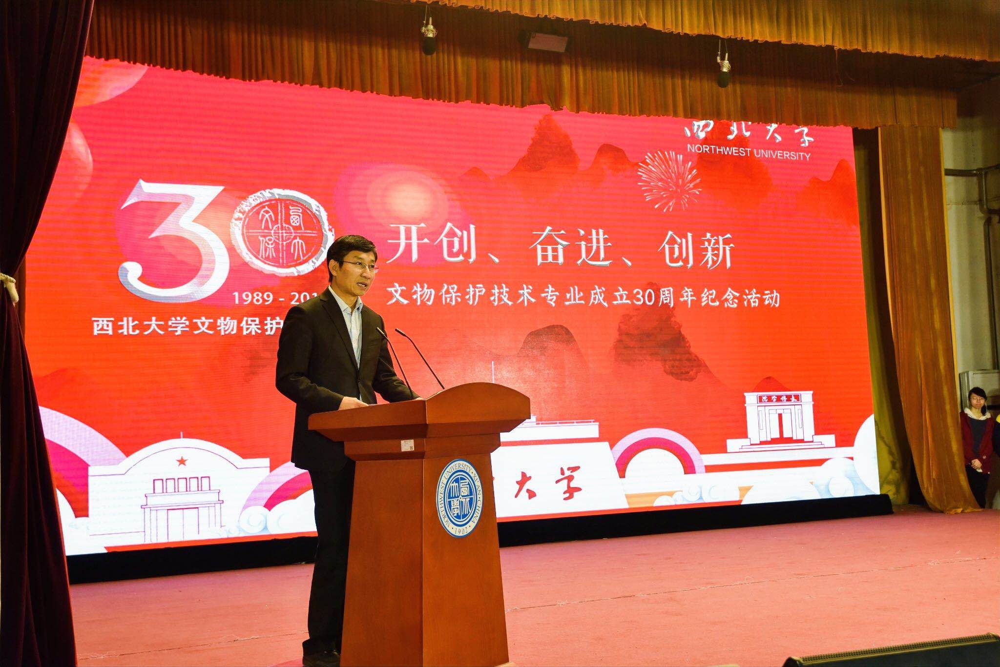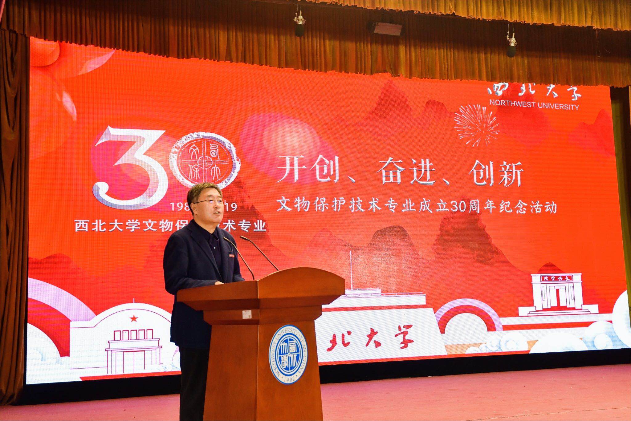 11月30日上午,williamhill威廉希尔文物保护技术专业成立30周年纪念活动在太白校区大礼堂举行,陕西省文物局局长罗文利,故宫博物院原副经理、故宫文物医院经理宋纪蓉教授,中国文物保护技术协会理事长王时伟研究馆员,williamhill威廉希尔董事长郭立宏教授,公司党委常委、副董事长王尧宇教授,文化遗产研究与保护技术教育部重点实验室主任铁付德研究员,全国各地文物保护行业机构、协会和兄弟高校、友好协作单位的领导和代表,员工代表,校内各职能部门、院系负责人和公司党政班子成员、师生代表等五百余人出席了此次活动。活动由公司党委常委、副董事长常江主持。