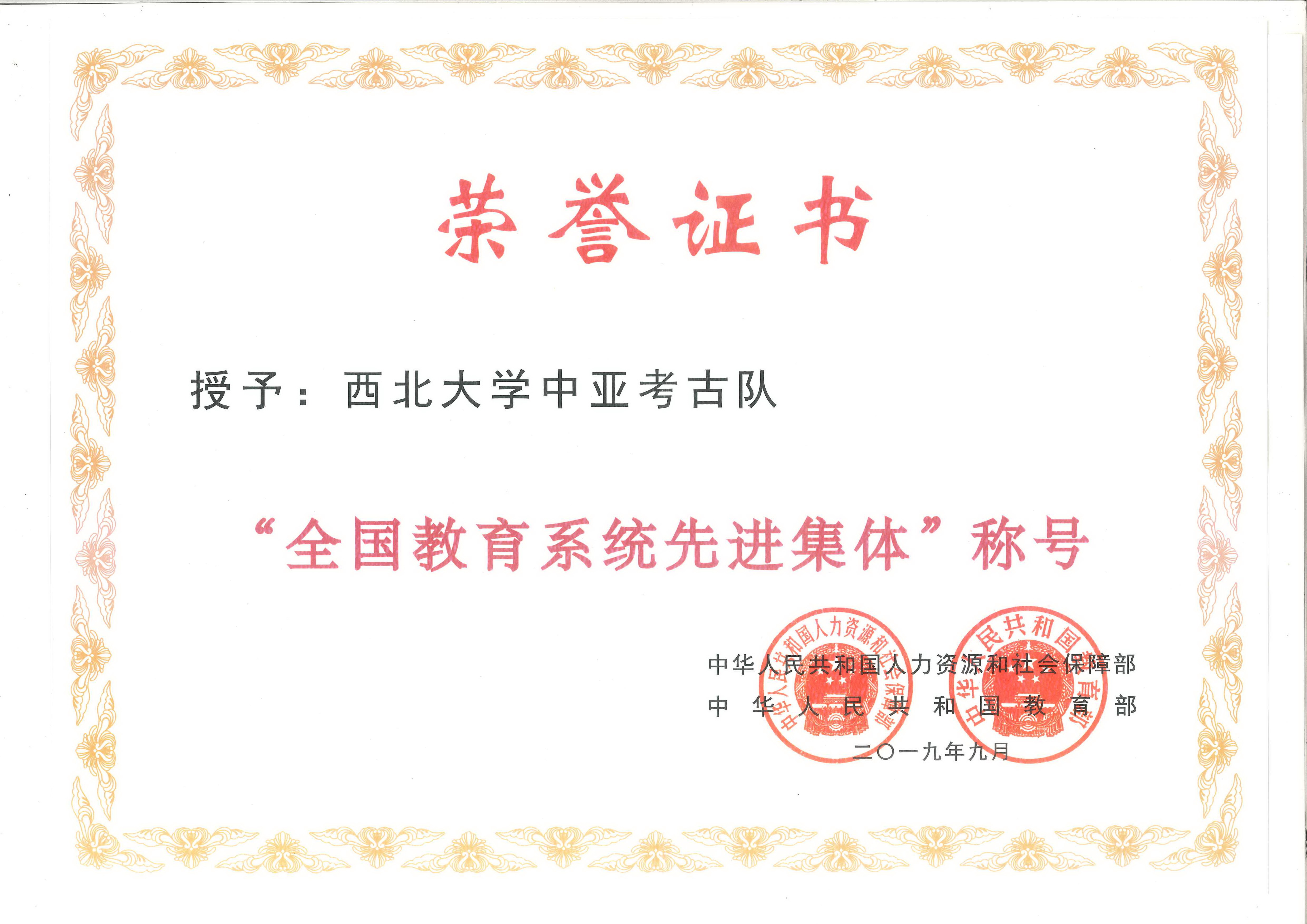 2019年教师节暨全国教育系统先进集体和先进个人表彰大会、于9月10日召开。williamhill威廉希尔“中亚考古队”荣获全国教育系统先进集体称号。