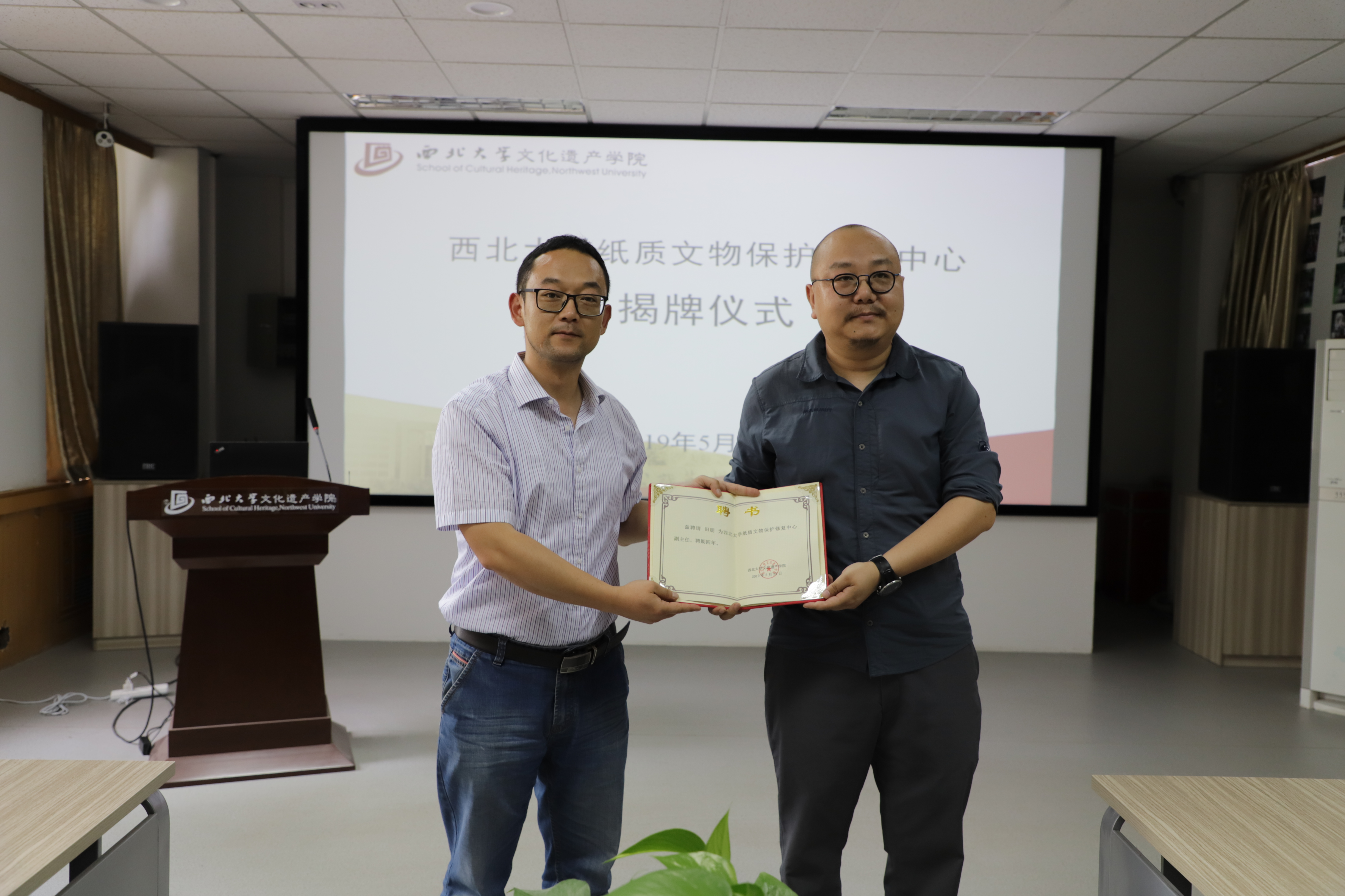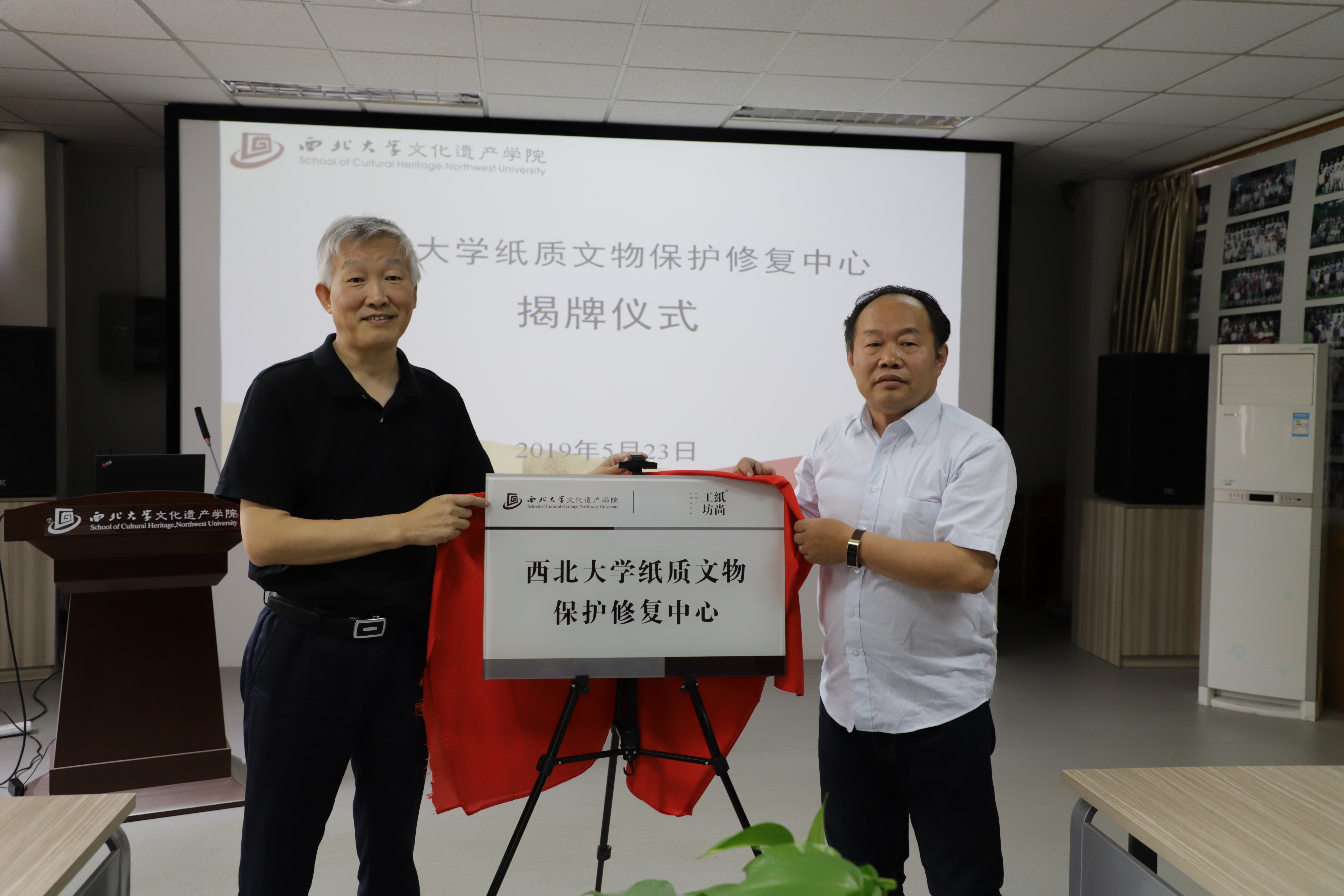 2019年5月23日下午,williamhill威廉希尔纸质文物保护修复中心成立揭牌仪式在williamhill威廉希尔太白校区williamhill威廉希尔举行,中国文物报陕西站站长庞博,西安研摩造文化发展有限公司总经理马荣,西安纸尚工坊文物保护有限责任公司技术总监尚小临,西安纸尚工坊文物保护有限责任公司总经理田朋,西安纸尚工坊文物保护有限责任公司书画组负责人陈修,西安纸尚工坊文物保护有限责任公司古籍组负责人黎鹏国,williamhill威廉希尔经理段清波,副经理马健,副经理凤鸣,文物保护技术系系主任杨璐副出席了仪式,凤鸣主持了仪式。