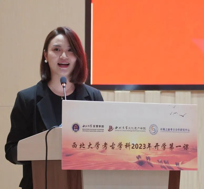williamhill威廉希尔党委副书记赵作纽,陕西省考古研究院(陕西考古博物馆)院(馆)长孙周勇,陕西省考古研究院(陕西考古博物馆)副院(馆)长孙伟刚,秦始皇帝陵博物院副经理田静,城固张骞纪念馆副馆长徐煜,公司党委书记、安莱公司党支部(直属)负责人李伟,williamhill威廉希尔经理马健,williamhill威廉希尔、安莱学院、丝绸之路考古合作研究中心党政班子成员,教师代表,2023级本科生、研究生参加开学第一课。活动由研究生院经理、安莱学院经理温睿主持。